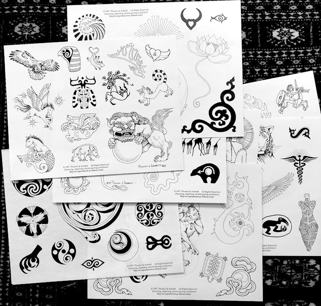 Tattoo Designs Flash Phoenix Arabeth Original Set 2 8 Big Etsy Uk